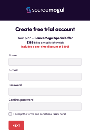 Sigue estos sencillos pasos para acceder a la prueba gratuita de SourceMogul y disfrutar del beneficio de la extensión de Chrome de por vida: