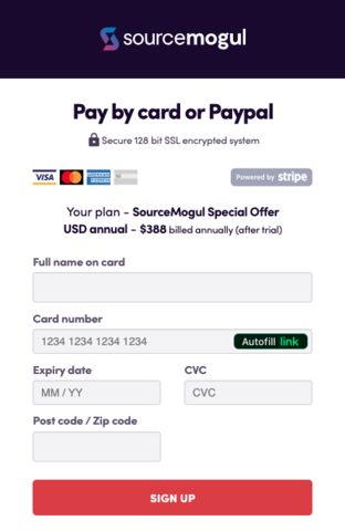 Sí, SourceMogul requiere que se ingrese un método de pago al momento de crear la cuenta para activar la prueba gratuita.